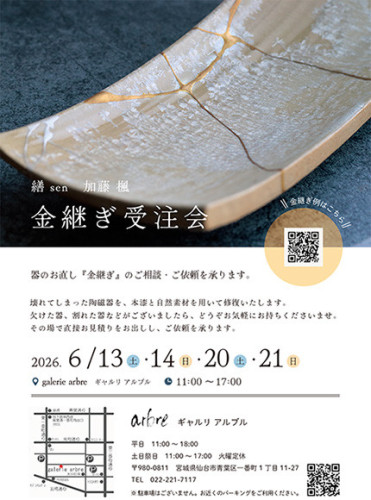 金継作家 加藤楓さんの金継ぎ受注会を開催いたします。
